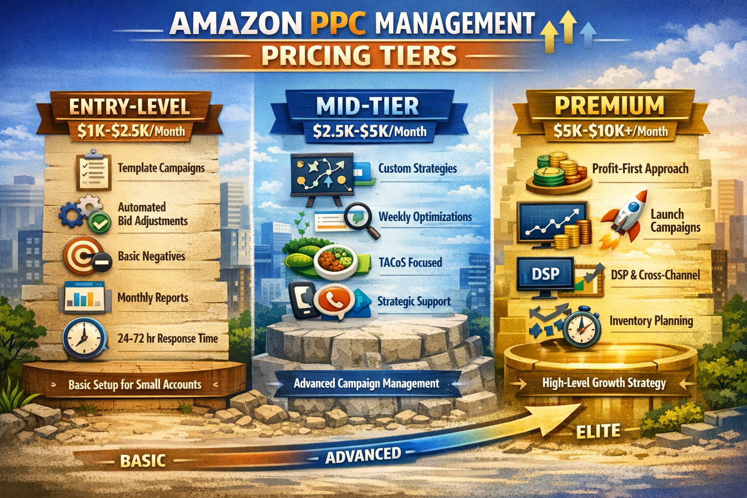 Typical Range: $1,000–$6,000/month for most 7-figure sellers. Enterprise accounts with complex catalog structures can run $8,000–$15,000+.